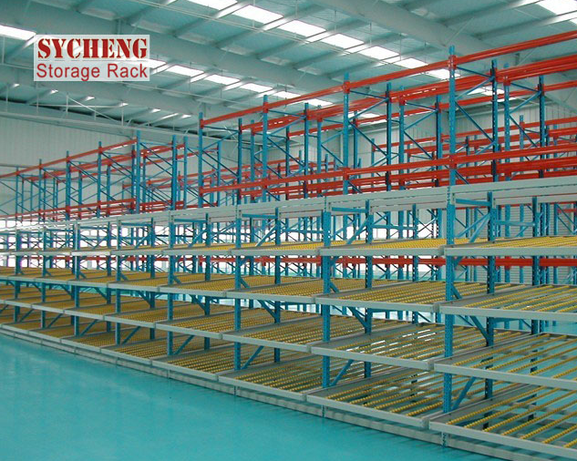 流利式貨架通常由中型橫梁式貨架演變而成,通過滾道將貨物從配貨端輸送到取貨端,貨物借助重力自動下滑,可實現“先進先出”作業,使用成本低,存儲速度快、密度大。貨架每層前后橫梁之間設置滾輪式鋁合金或鈑金流力條,呈一定坡度(3°左右)放置。貨物通常為紙包裝或將貨物放于塑料周轉箱內,利用其自重實現貨物的流動和先進先出,貨物由小車進行運送,人工存取,存取方便,單元貨架每層載重量通常在1000KG左右,貨架高度在2.5米以內。適于裝配線兩側的工序轉換、配送中心的揀選作業等場所,可配以電子標簽實現貨物的信息化管理。廣泛應用于超市、醫藥、化工和電子等行業。