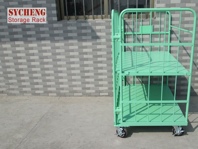 8)、可根據客戶要求添置層板,并配4個活動輪,方便于貨物的流動,并可加入連接器與叉車連接。