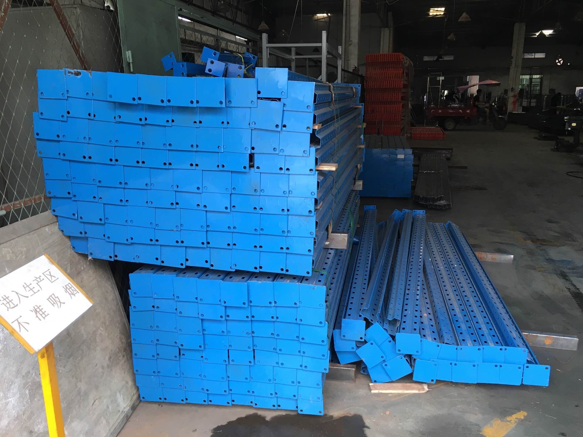 要想掌握好重型貨架的安裝方法,首先要對重型貨架的部件生產工藝有所了解。整個重型貨架系統包括立柱、橫梁、鋼底腳、橫撐、斜撐、托盤支撐、護欄、護腳,背靠背貨架連接桿,以及各種連接標準件。每一個部件都是經過一定的生產工藝生產出來的。1.立柱是用熱軋板卷材使用沖床以50毫米為間距的沖出雙排孔型,再經過滾軋成型,再到底部焊接上底腳板,外形美觀實用;2.橫梁采用的是合抱樑也是通過滾軋成型,然后焊接好掛片。