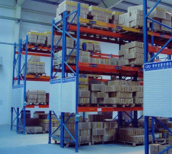 普通橫梁式貨架結構簡單、拆卸安裝方便,揀選率100%,根據倉庫可利用凈高及叉車可提升高度,如果倉庫的高度達到了8米以上的話,可以選用窄巷道貨架來進一步加大倉儲量,只要在橫梁式貨架的底部加上“三向堆垛叉車”的行動導軌,且使用三向堆垛叉車來進行存儲貨物。窄巷道貨架之所以增加了倉儲量,無非是貨架之間的通道縮窄,大概在1600mm-2000mm左右。