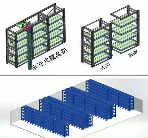 模具架有輕型和重型之分,如果在貨架上方配置天車,也就是起吊模具的吊車,那么價格比普通的肯定要貴一些。存放模具的貨架的種類有抽屜式、滑板式、全開式和半開式,都分幾格幾層。如果你購買的格數多層數多,那么價格自然就多一些,購買的類型不一樣,價格自然不同。一般說來,模具沒有標準的模架,一般企業都會根據自己模具大小和數量定制適合自己的模具架。