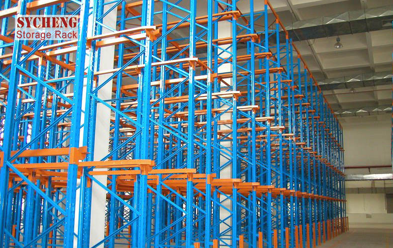 貫通式貨架系統的穩定性是所有種類貨架中較為薄弱的,為此貨架不宜過高,一般在10m以內,另外系統中還需加設拉固裝置。此種系統貨架排布密集,空間利用率極高,適于儲存少品種大批量同類型貨物,貨物可從同一側存入取出,也可從一側存入另一側取出.