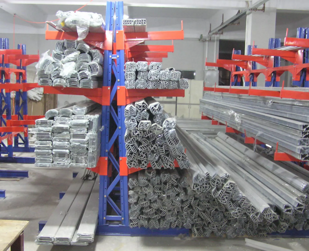 總的來說,懸臂式貨架更適合空間小、高度低的倉庫,空間利用率為35%-50%,在機械制造行業和建材超市都有較多應用。